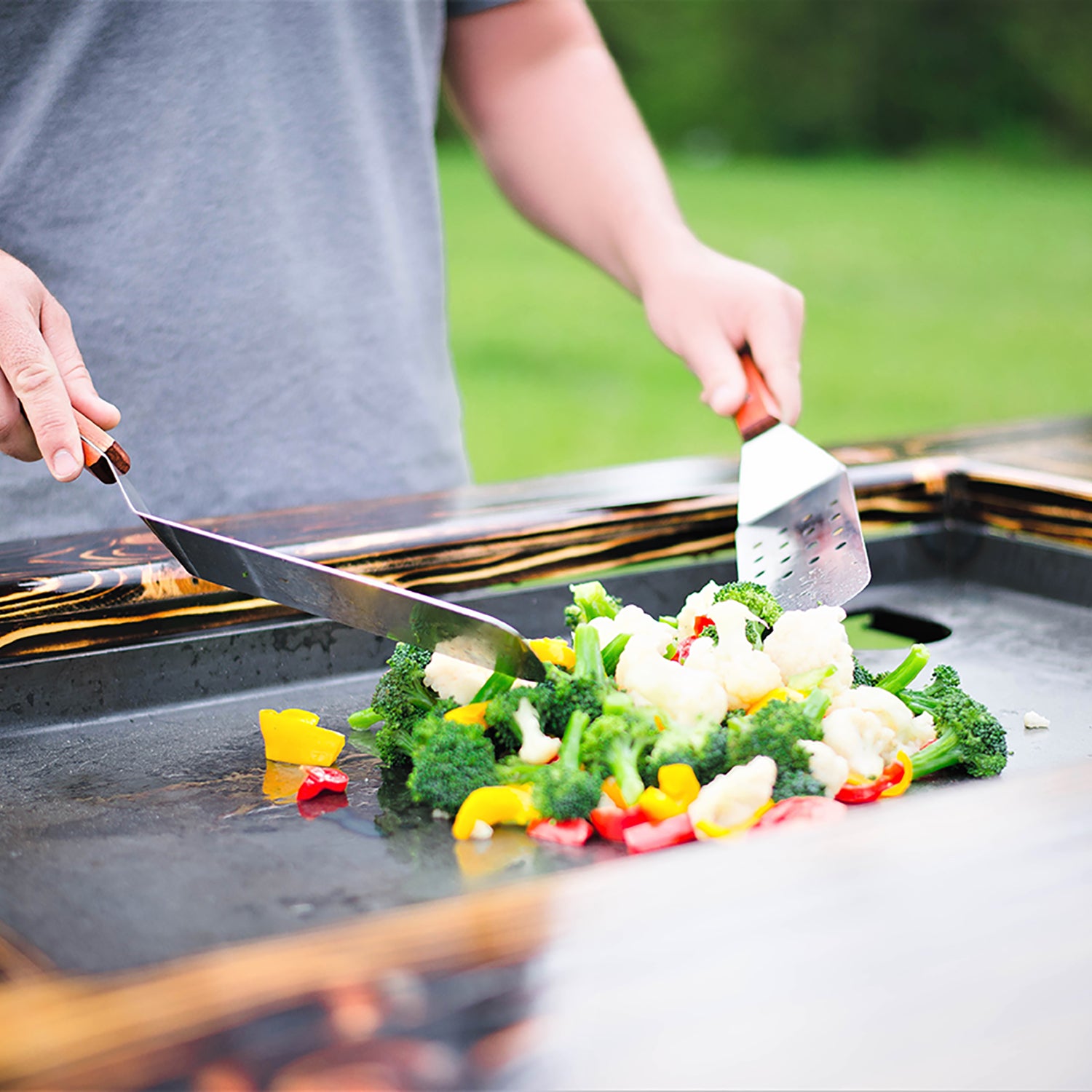 • ¼ inch ultra-thick, pre-seasoned steel cooktop